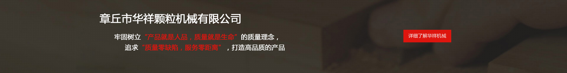 公司成立于1997年,前身為章丘市華祥機械廠(主營:顆粒機,飼料顆粒機,有機肥造粒機,有機肥設(shè)備,木屑顆粒機,顆粒生產(chǎn)線等), 公司是集機械制造,成套設(shè)備設(shè)計,安裝于一體的現(xiàn)代企業(yè),由鑄造、機械加工、合成組裝、設(shè)計開發(fā)、網(wǎng)絡(luò)營銷五個聯(lián)合單位構(gòu)成。主要生產(chǎn)飼料加工機械,生物質(zhì)燃料機械,有機肥生產(chǎn)設(shè)備三大系列產(chǎn)品。 華祥機械牢固樹立“產(chǎn)品就是人品,質(zhì)量就是生命”的質(zhì)量理念,追求“質(zhì)量零缺陷,服務(wù)零距離”,打造高品質(zhì)的產(chǎn)品。 精心的設(shè)計、精湛的制造、精細(xì)的施工、全方位的服務(wù),以及華祥人長期秉持“讓我們共同前進”的理念,使華祥贏得了良好的社會信譽,產(chǎn)品遠(yuǎn)銷意大利、越南、緬甸、澳大利亞等全球多個國家和地區(qū),產(chǎn)品質(zhì)量和信譽得到了廣大用戶的認(rèn)可。 未來,華祥人將繼續(xù)大力發(fā)揚"誠信、創(chuàng)新、協(xié)作、效率"的企業(yè)精神,堅持技術(shù)、產(chǎn)品、管理、服務(wù)創(chuàng)新,大力推進產(chǎn)品精品化和市場國際化,全力打造“華祥”機械品牌形象。想客戶所想,為客戶創(chuàng)造價值,協(xié)助客戶的事業(yè)獲得成功;"華祥"人充滿信心,滿懷希望,真誠期待與您共贏。